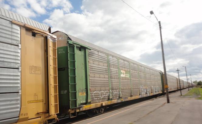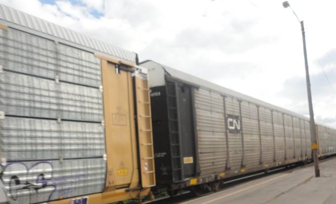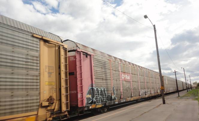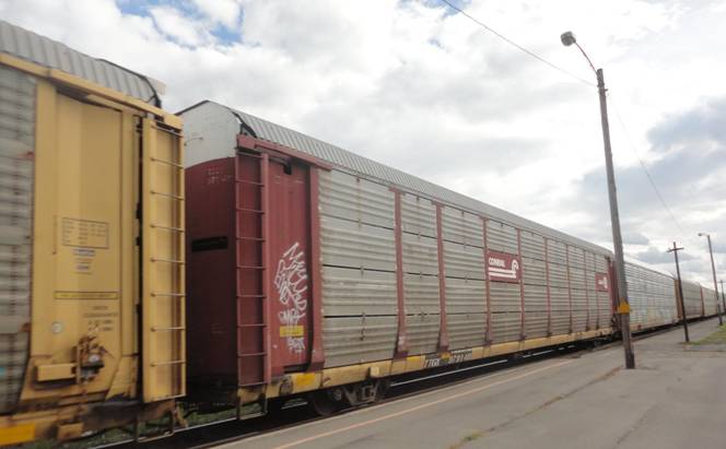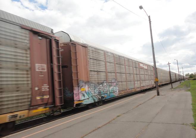 Next was an eastbound auto rack train. I photographed the locomotives and certain auto racks.