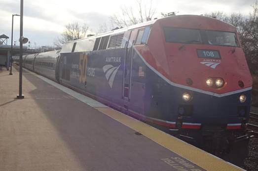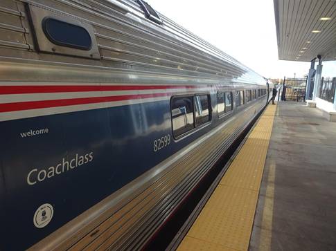When I got off, I saw the train was led by Amtrak P42 #108 which is painted in the livery work by Amtrak’s new ALC-42 locomotives. The reason for this is for Amtrak’s 50th anniversary back in 2021.