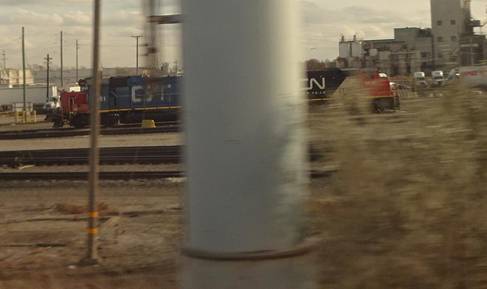 The Texas Eagle departed on time. I filmed equipment in the station and in the yard. My ticket was taken shortly after. My phone was again giving me problems but I eventually clued it to it working under certain networks and not others. I switched it to a network it seems to work. Hopefully that will solve the issue. When we passed a CN yard, I attempted to photograph two units still in Grand Trunk colours.