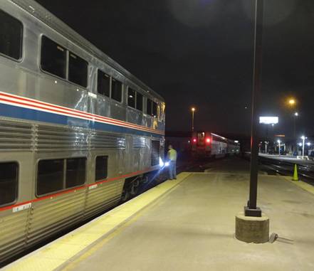 The rest of the Texas Eagle pulled ahead then reversed onto the track next to coach #34024. I filmed the train backing in and took some photos.