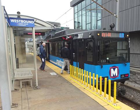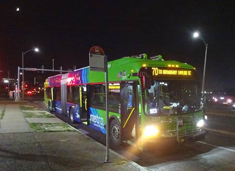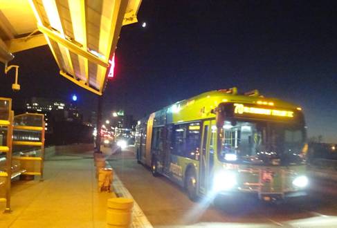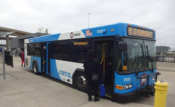 I rode for several minutes before I got off. I rode through what looked like the entertainment district of St. Louis. After I got off I photographed the bus.