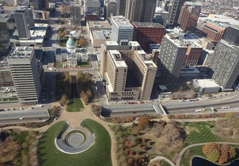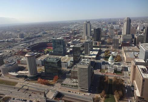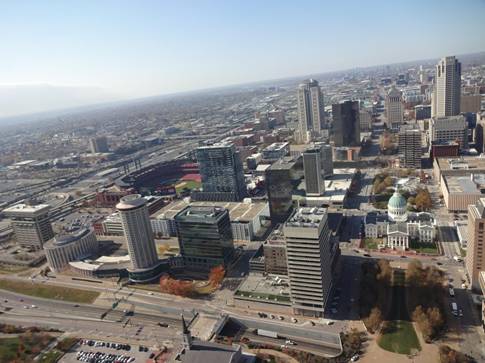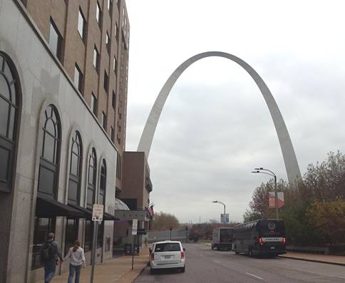 I rode to 8th and Pine and got off. I filmed the train pulling out. This was the closest station to the arch. However it was still a few blocks away. I took some photos of it.