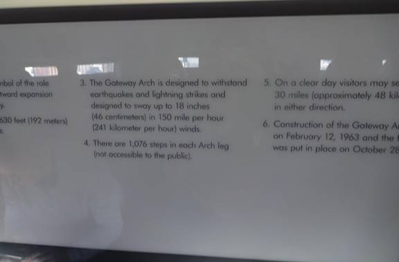 I then went to join the line for the North elevator. There was a video on the history of the arch. I took some photos.