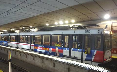 I then made my way back to 8th and Pine LRT station. I stopped at a Metro themed store near the station but didn’t buy anything. While waiting for my train, I photographed an LRT train going the other way in the original livery.