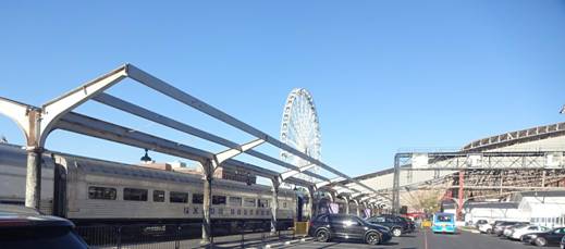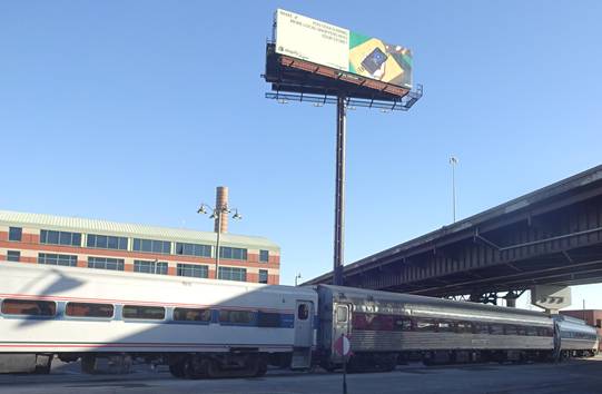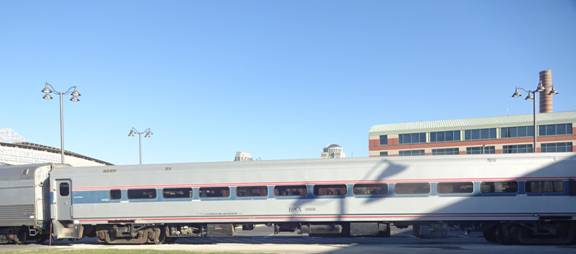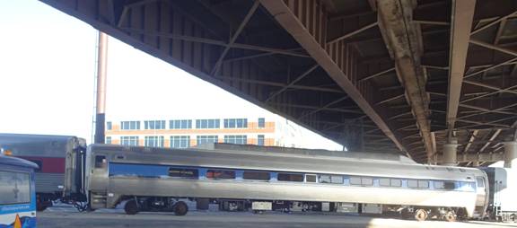 I got on an LRT train and rode to Union Station. During the ride, I took some photos of trains as the LRT line ran near the main line Amtrak uses. I got off at Union Station and headed off. Amtrak no longer serves Union Station; instead, it’s a tourist area. However, the train shed is still intact and has three tracks still leading to the station that are connected to the main line. I saw 10 passenger cars for a “Polar Express” excursion. Three of them were Amtrak Horizon coaches. I photographed those cars and other cars.