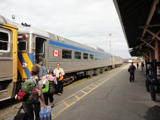 By the time I returned, the depot was open. I bought a ticket to North Bay. I then found a table in the waiting room next to an AC outlet and worked on this report some more. I bought a drink from a vending machine.