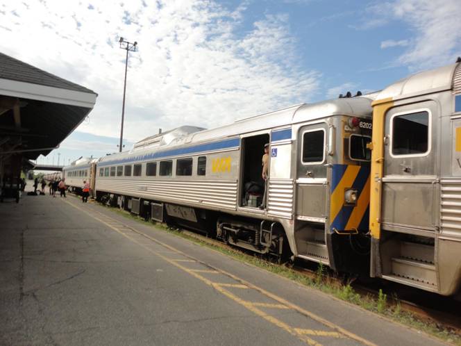 Today's train had the same RDC-2s from yesterday. I also saw the same engineer from the day before and spoke with him. I asked him why the train was late yesterday. He said they were delayed because of a freight train with distributed power which had problems and they had to “reboot the train” a couple times. He also told me of a small component on the 6205 and 6215 was broken which meant the toilets weren’t working which was one reason 6202 was in the train.