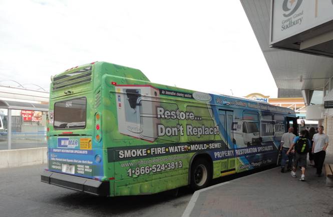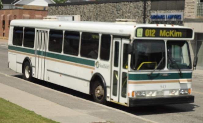 Someone noticed the back doors were a bit finicky. However, they soon were working okay. Our next photo stop was the New Sudbury Centre mall. We would be having lunch at the food court. I photographed 943 before I went inside the mall. The bus was then moved to another area of the parking lot.