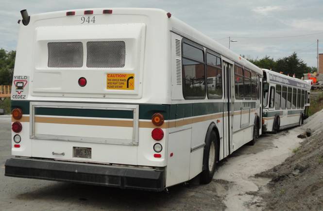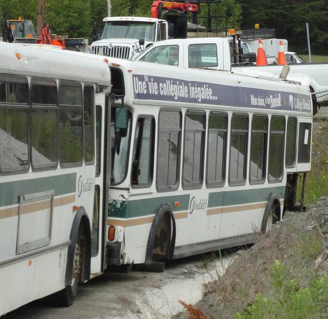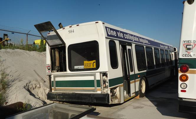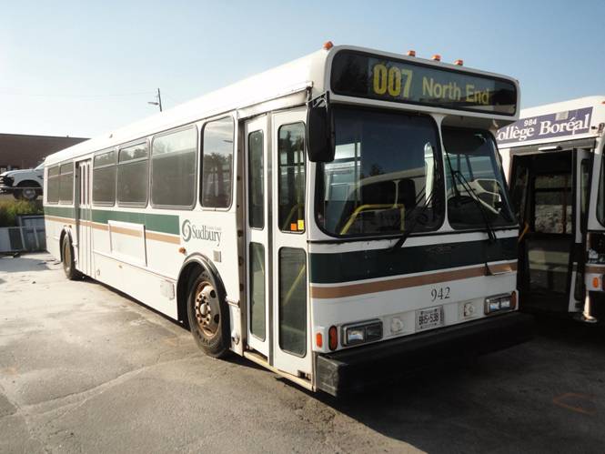 They asked me why I had my suitcase. I told them I was expecting to go to North Bay after the charter. They said they were staying the night in Sudbury. This presented a huge problem for me because I was hoping to get a ride, but I didn’t have anywhere to stay in Sudbury. I did leave my suitcase in the trunk of the people who gave me a ride in from the street. I then photographed Sudbury Transit's two other Orion 5s as well as retired Orion 6 #984 which was missing several parts including wheels!