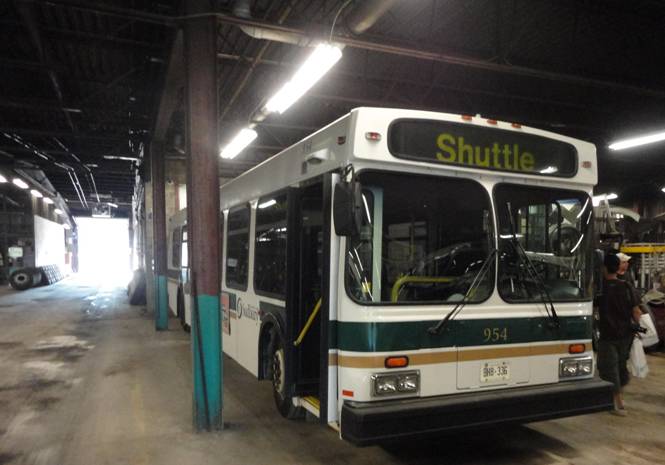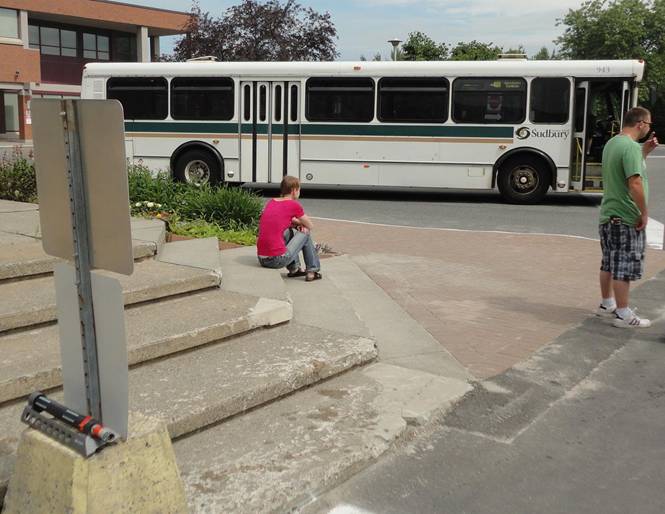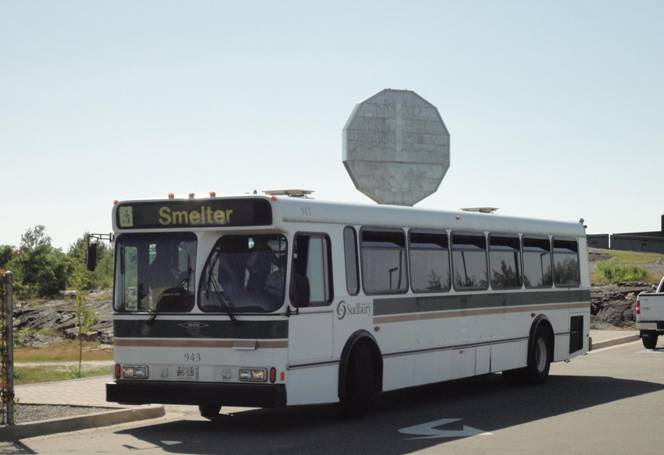 We then headed back to the garage. An older Sudbury Transit bus stop sign was raffled off. I took a couple photos after I got off the bus.