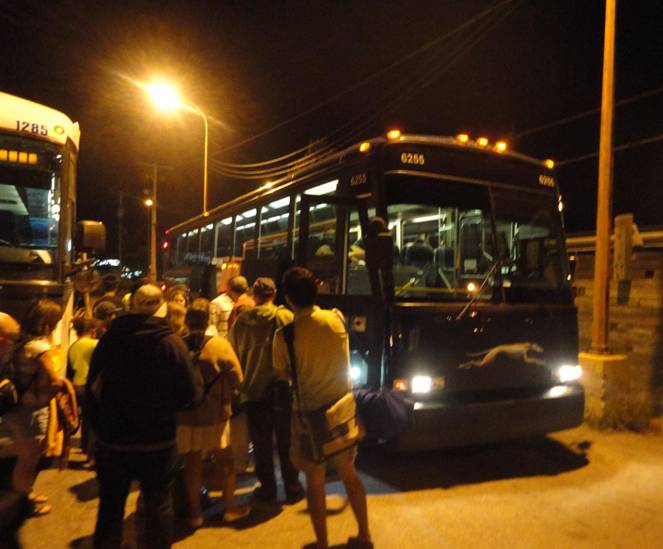 A couple buses arrived. The bus I would ride arrived after 11:30 pm. Boarding began around 11:45 pm I photographed the bus before I got on.