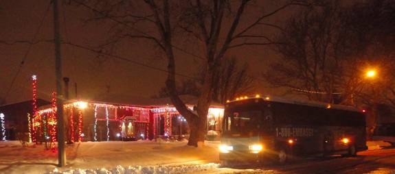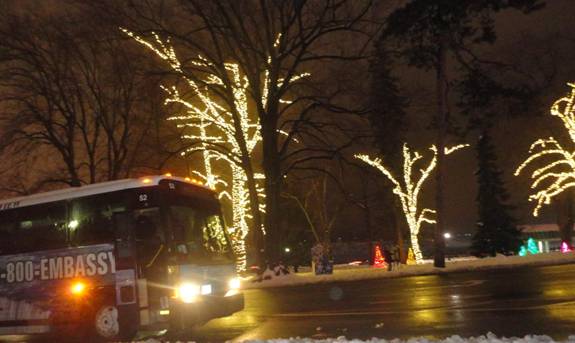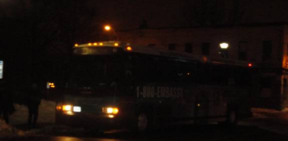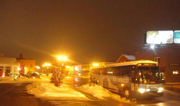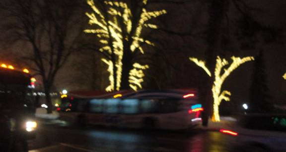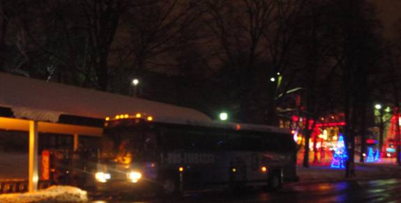 then got back on the bus. By now it was dark. The bus soon left. As we left, I