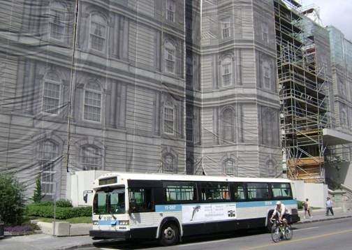 on, the driver said (in French) that the bus had to detour because of a fire.