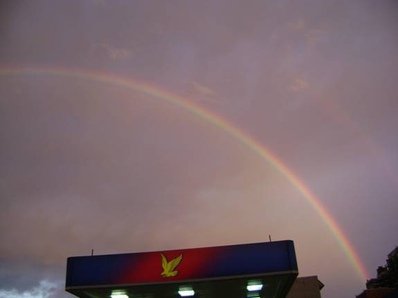I went back to my hotel and stayed there for awhile. About an hour later, I decided to go out looking for an ATM machine and get some cereal for breakfast the next day. I went out and walked a few blocks north. Someone pointed out to me a rainbow which I photographed.