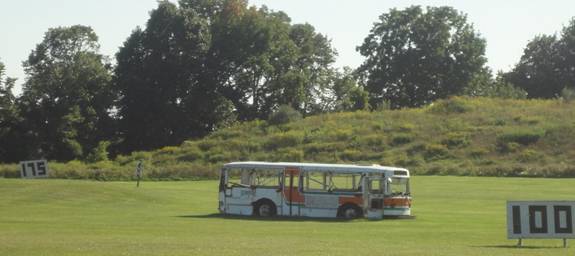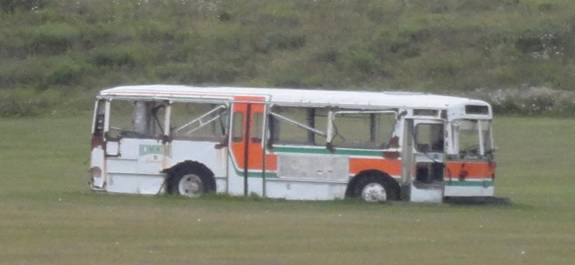 We each got a hole in one during the game, but not on the same hole. After we completed the last hole, it was time to do what we had come for. We got into position and my friend Larry used his zoom lens to take a picture of the bus. We looked at the photo and we determined the number of the bus was 507. #507 was retired in either 2000 or 2001. So the bus had been sitting there for awhile.
