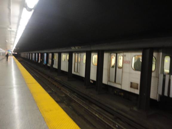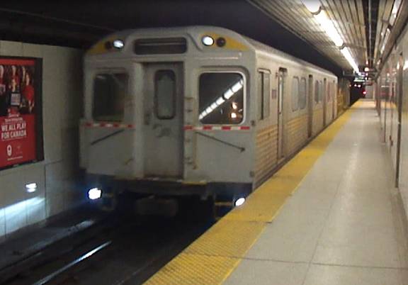 A week later, Larry and I went out work car fanning again. We parked near Bloor and Yonge and went into the subway. We had originally planned to go to Davisville, but it was very cold out, so we decided to go to Eglinton instead. We boarded a Toronto Rocket train. This was after midnight so trains were going to turn around at Eglinton instead of Finch.