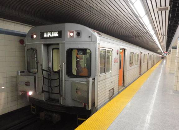 The next northbound train to enter the station was a train of T-1s. As more Toronto Rocket trains enter service, T-1s are displaced to the Bloor-Danforth line which has been bumping the H-6s into retirement. As of the time I went fanning, some H-6s had been retired and some cars had left the property. I photographed the T-1.