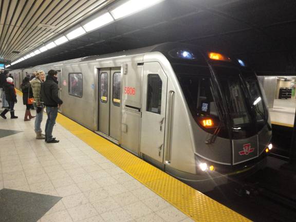 The first train to arrive was a Toronto Rocket. However, it was signed up for Finch instead of Eglinton. However, I noticed it was the 5801-5806 set. The Toronto Rocket trains are assigned numbers that end from 1-6 in order since they are all a connected train instead of two “married pairs” as per older subway cars.