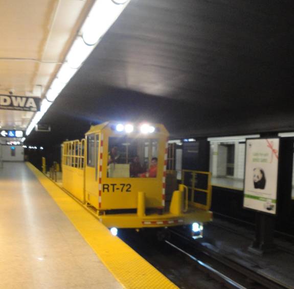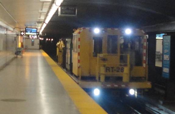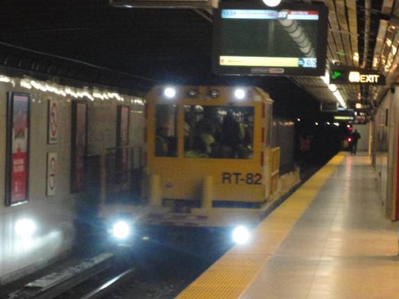 Larry commented how there were two work cars in a row. A few minutes later, a TTC employee told us the last westbound train had gone. We left the station though after we left the platform, we heard the horn of another work car. Larry and I got a few work cars, but we were a little disappointed that we didn’t see cars RT-14 and RT-15 which are an H-1 paired with an H-4. At least I got to see RT-43 and RT-44. We then headed out. I got home shortly before 3:00 am. However, Larry and I are planned to do something like this again.