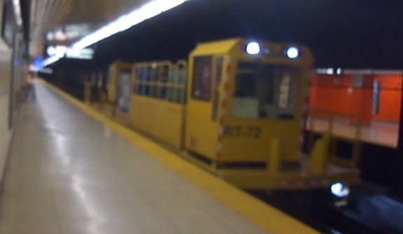 After RT-43 and RT-44 has departed, I said to Larry “Did you see that?!?” unnecessarily. We then headed back to Broadview station. By now it was 1:00 am. We knew that the work cars would start appearing in the next 30 minutes. The first work car was RT-72. I photographed it as it passed.