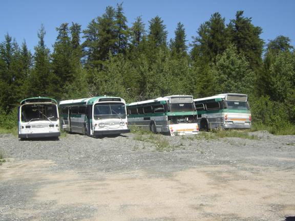 In the yard, I saw various buses including former TTC Flyer D800B #8257, which is owned by the Canadian Transit Heritage Foundation. I also saw three of their other buses which were all fishbowls: Buses 720 and 724 from Oakville Transit, and Timmins Transit #67, which was ex St. Johns Newfoundland bus #275. Besides the CTHF’s buses, I saw some other retired fishbowls from Timmins Transit One bus was stripped and appeared to have had the Jaws of Life taken to it by the fire department for practice on what to do in the event of a real bus accident. There were also five other ex GO Transit fishbowls that were in the yard that were still in the GO Transit livery. Four of them had been stripped of parts.