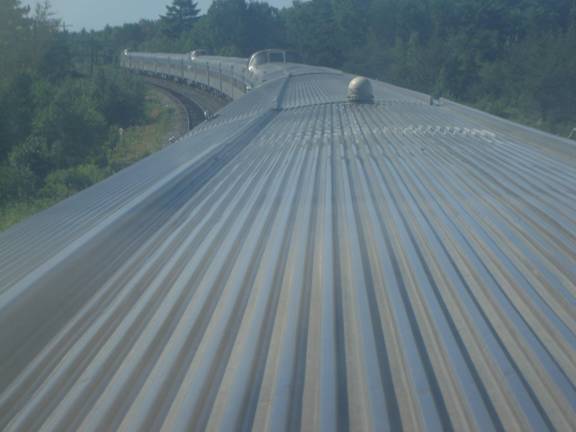 I was seated HEP1 coach #8129, the coach behind the baggage car. I stowed my luggage and relaxed. After my ticket was taken, I headed to the dome car which was three cars behind my car. I got something to eat from the snack bar and watched the view from the dome. At various points we took sidings while waiting for various freights to pass. I took one picture from the dome of the back end of the train which was for sleeping car passengers.