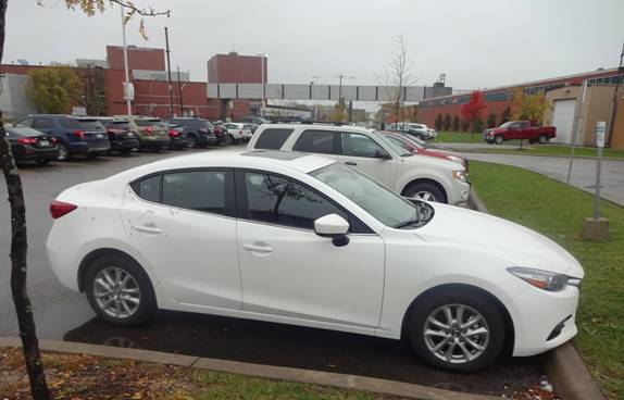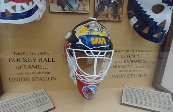 I then drove back to the VIA station and parked the car. I put the key in the glove box as I had been told to do when I dropped the car off. I followed the instructions in the email but I had problems so I went back into the VIA station and used the kiosk to end my rental. I photographed a hockey helmet with a VIA LRC locomotive on it.