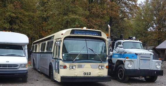 A few years before retirement, #912 was painted in the Sandwich Windsor and Amherstburg livery to commemorate the 130th anniversary of the founding of the SW&A. It was stored at the Windsor garage for a few years before it went to the Canadian Transportation Museum. Unfortunately the bus is stored outside.