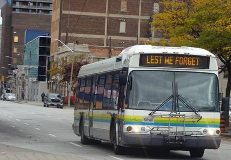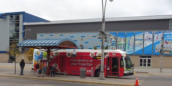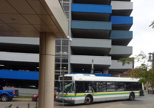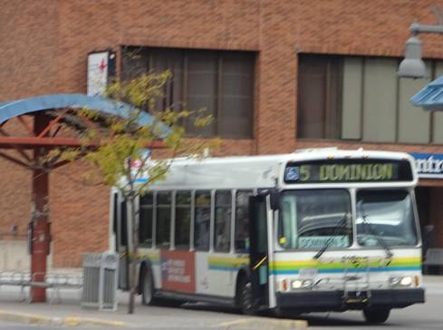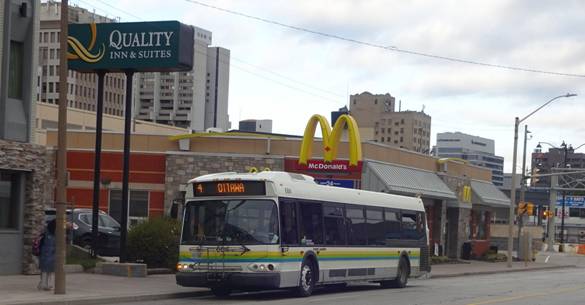 When my bus came, I saw it was one of Transit Windsor’s newest Nova LFS buses. I rode to the intersection of Ouellette Avenue and Tecumseh Road. I got off and photographed the bus.