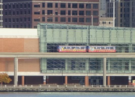 I rode a few stops before I got off and filmed the bus pulling away. I walked back to the terminal. I stopped to photograph the Detroit People Mover across the river.