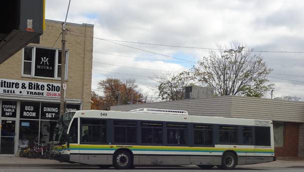 I saw Nova LFS #549 pull in. #579 was built in 1997 and is now Transit Windsor’s oldest bus. I photographed it