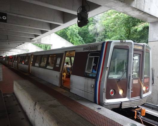 We got up and got dressed. We went to the lobby for breakfast. After breakfast, we finished packing and checked out of the hotel. We then caught a bus to the Huntington Metro station. There was a train at the station already. I photographed it.