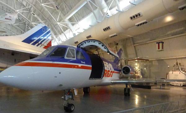I filmed the Korean Air jet's takeoff roll. I then phoned Mark whom I had gotten separated from and arranged to meet him downstairs. I took the elevator down and met up with Mark. We looked in the gift shop but I didn't buy anything. We left the museum and I photographed our rental car.