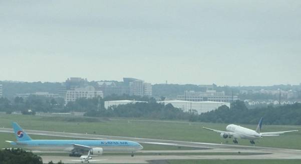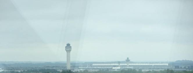 I had to wait in line to get on the elevator, but I eventually made it up there. I photographed a plane as it landed.
