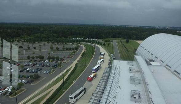 I decided to stick around waiting for the Korean Air jet to take off. I photographed a few landing planes and some buses from the tower.