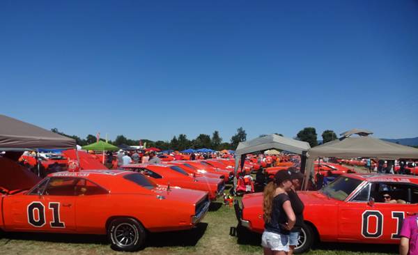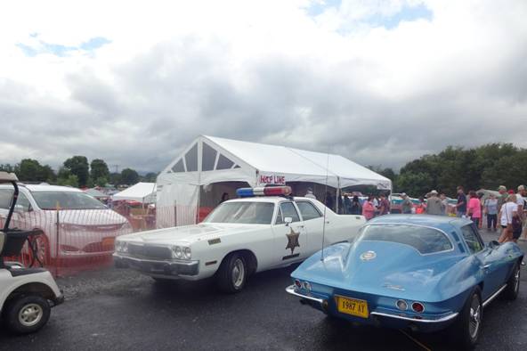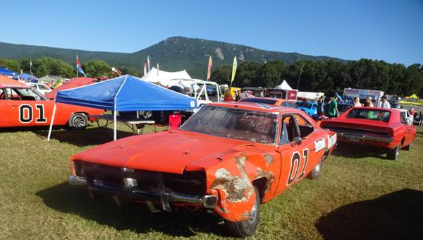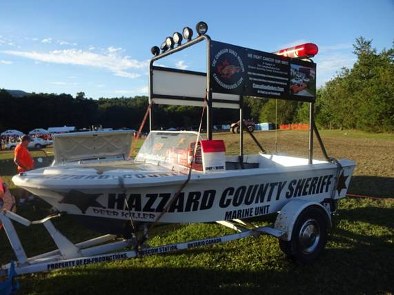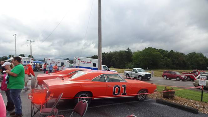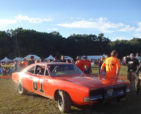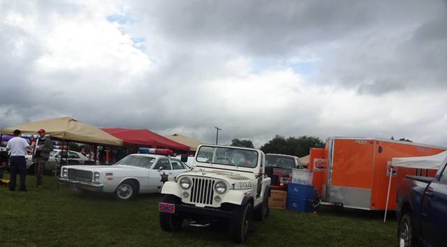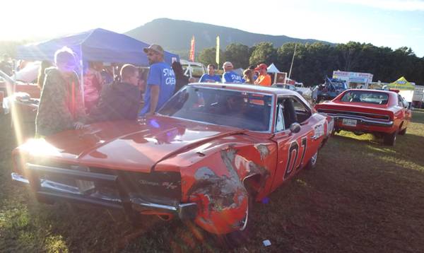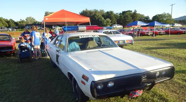 After parking, we headed to the event. I photographed several cars including a damaged Hazzard County police car on the back of Cooter’s tow truck.