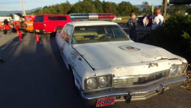 There was going to be a jump with a replica General Lee. Prior to the jump, there was a Hazzard County patrol car driving around. I photographed it.
