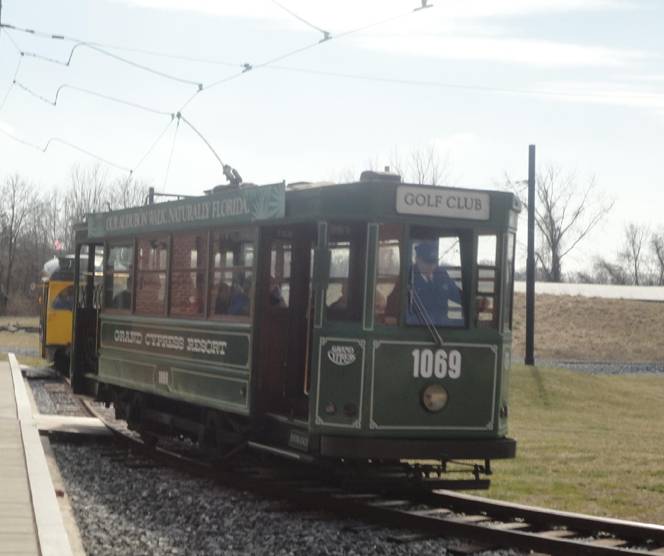I decided to ride what was running anyway. I boarded #1069 for my first ride. 1069 is the oldest operational car at NCTM; having been build in 1907. After the car departed the visitors' Center, I photographed PCC 4603.