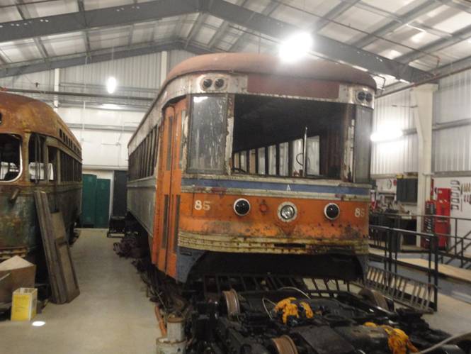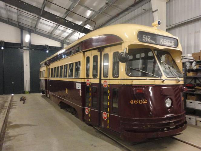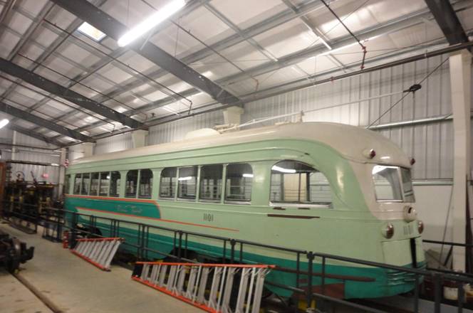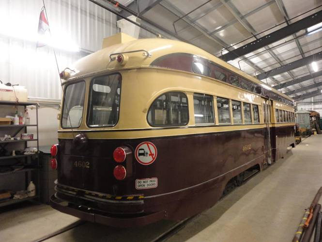 I decided to ask to see if I could get access to NCTM's maintenance barn. I told them that I was a member at the Halton County Radial Railway Museum and knew about the maintenance pit. After a couple minutes, a member from NCTM took me into the barn. I photographed various cars in the barn including Toronto PCC #4602, NCTM's recent acquisition; a car that once belonged to SEPTA. I learned that the ex SEPTA trolley was acquired from another museum in exchange for the trucks that used to be under Washington streetcar #0509; one of the cars lost in the 2003 car barn fire.