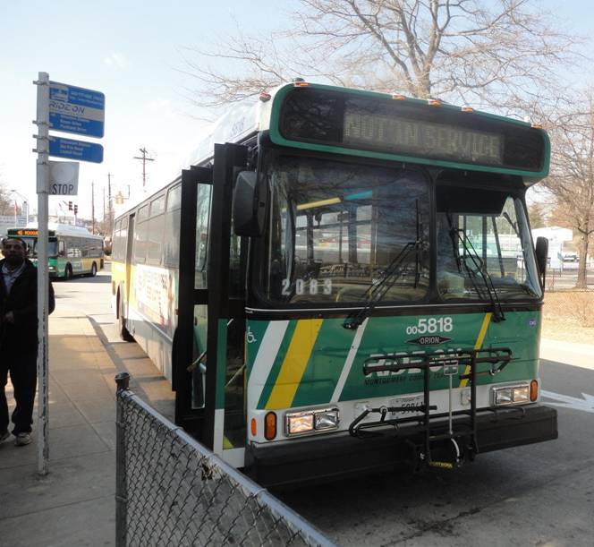 After lunch, I caught a Ride-On Orion 5 CNG bus to the Rockville Metro station. I photographed it when I got off.