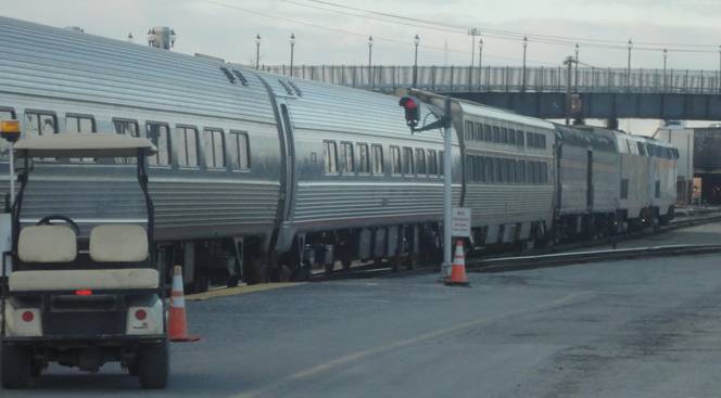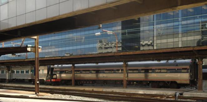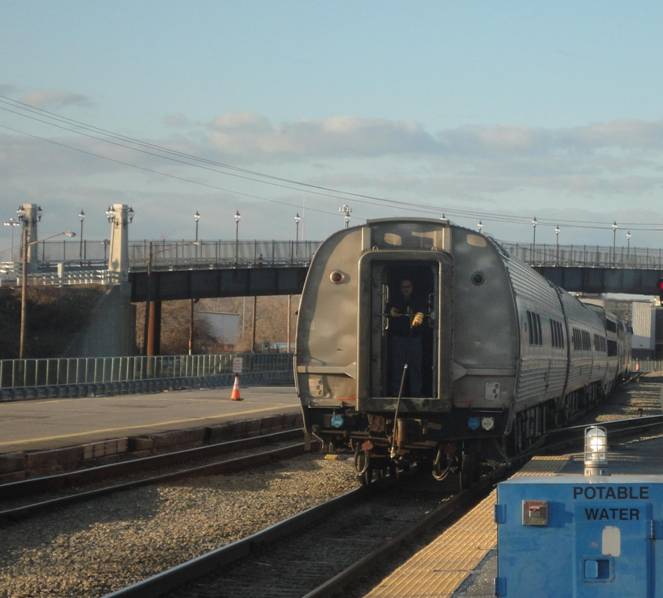 When I went to exit the Metro, I found I had to pay an additional exit fare of $0.10 which was a minor irritant. I then went to the food court and worked on this report for awhile. After awhile, I went to line up for train 84. Soon, it was time to board. I photographed “Corridor Clipper and a private car lettered for New York Central.