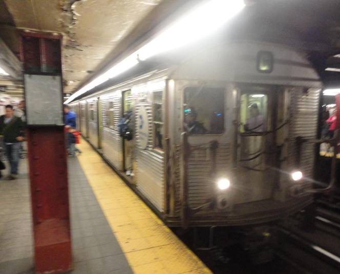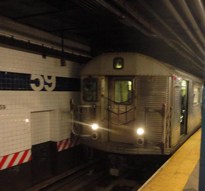 I decided to ride the New York subway system to ride the oldest cars. I caught a train of the old cars on the C line and rode it three stops north to 59th Street. I photographed the train before I filmed it pulling out.