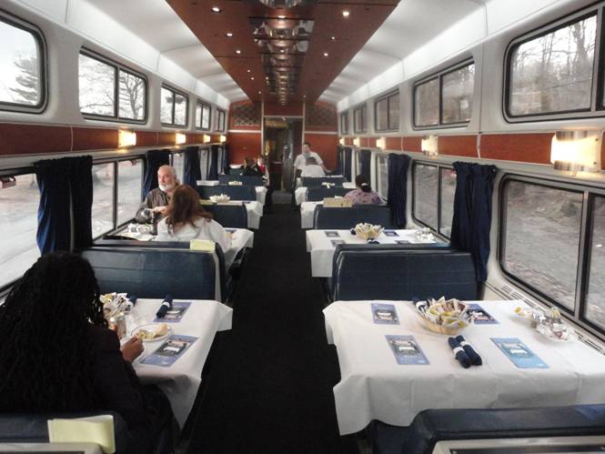 An Amtrak employee took dinner reservations. I chose to have the first seating at 5:00 pm. The train stopped at Croton-Harmon.
