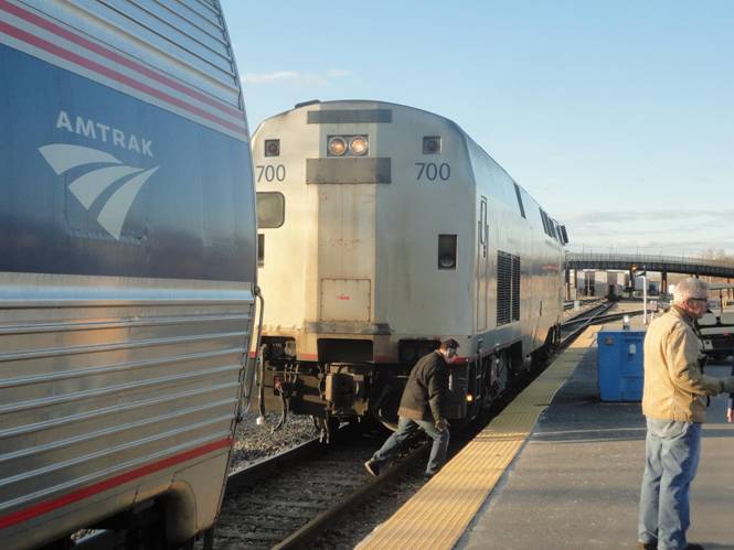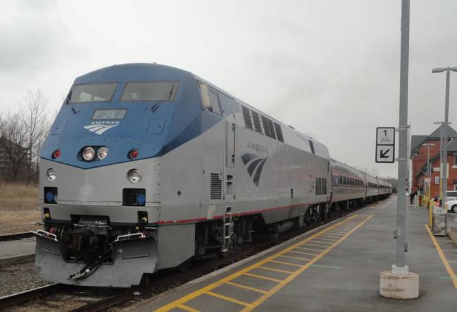 We were soon approaching Utica. I readied my stuff in preparation to get off. Train 49 arrived into Utica 8 minutes late which is much better than it did the last two times I was in Utica. I got off and photographed the train.