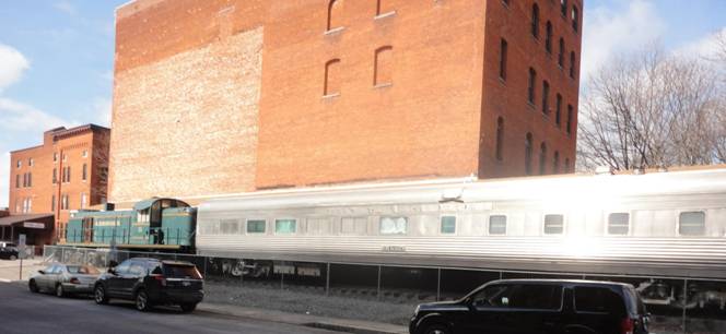 I first photographed the Alco locomotive and the Santa Fe dining car on display across the street from the station.