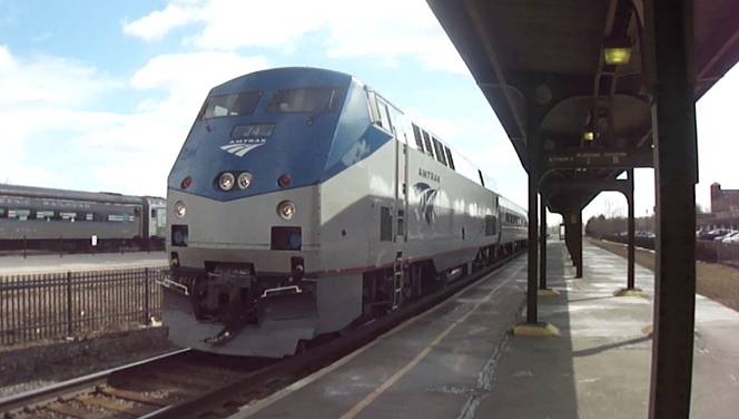 Outside of Rochester, the train stopped to let train 64 pass. As it passed, I mostly filmed it. We then were moving again and made a brief stop at Rochester.