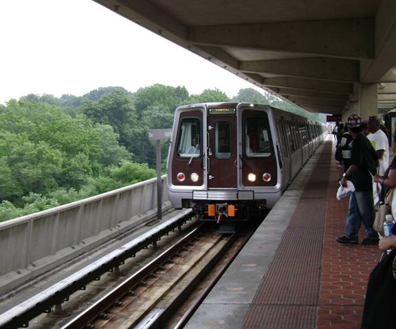 Washington’s subway is somewhat different than the subways in Toronto, Chicago, and New York. There are fare zones and you also have to pay an exit fare. However, you can buy a pass that allows unlimited rides on the Metro for $6.50. I did just that. The Washington subway now has digital displays indicating how long before the next train comes in, which line it’s on, the train’s destination, and the number of cars on the train. As the subway I was going to take pulled in, I photographed it.