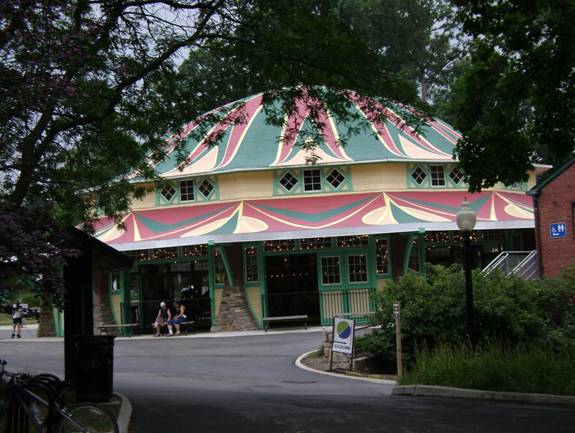 Glen Echo Park was originally started by the Washington DC streetcar company and in while the streetcars were running; this was a popular amusement park. It featured a carousel, a roller coaster, bumper cars, and a swimming pool known as the Crystal Pool. The park closed in 1969; ten years after streetcars stopped running in Washington DC. Today, the carousel still exists while the rollercoaster had long since been torn down. The pavilion where the bumper cars were is now a dance hall. All that’s left of the Crystal Pool is the entrance. I took a photo of the carousel.