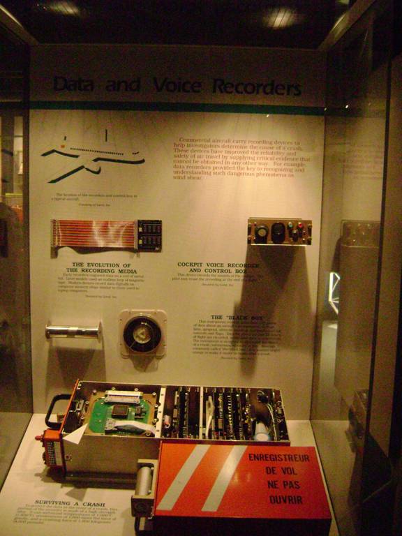 A display on the “Black Boxes” that help investigators find the cause of a plane crash. How interesting…
