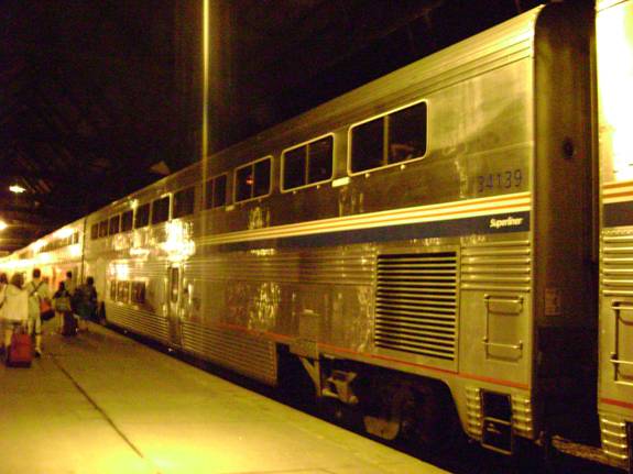 I was seated in Superliner 2 coach #34139, the coach I was hoping to sit in yesterday. I took a window seat on the left hand side of the train. Shortly after I found my seat, I phoned home.